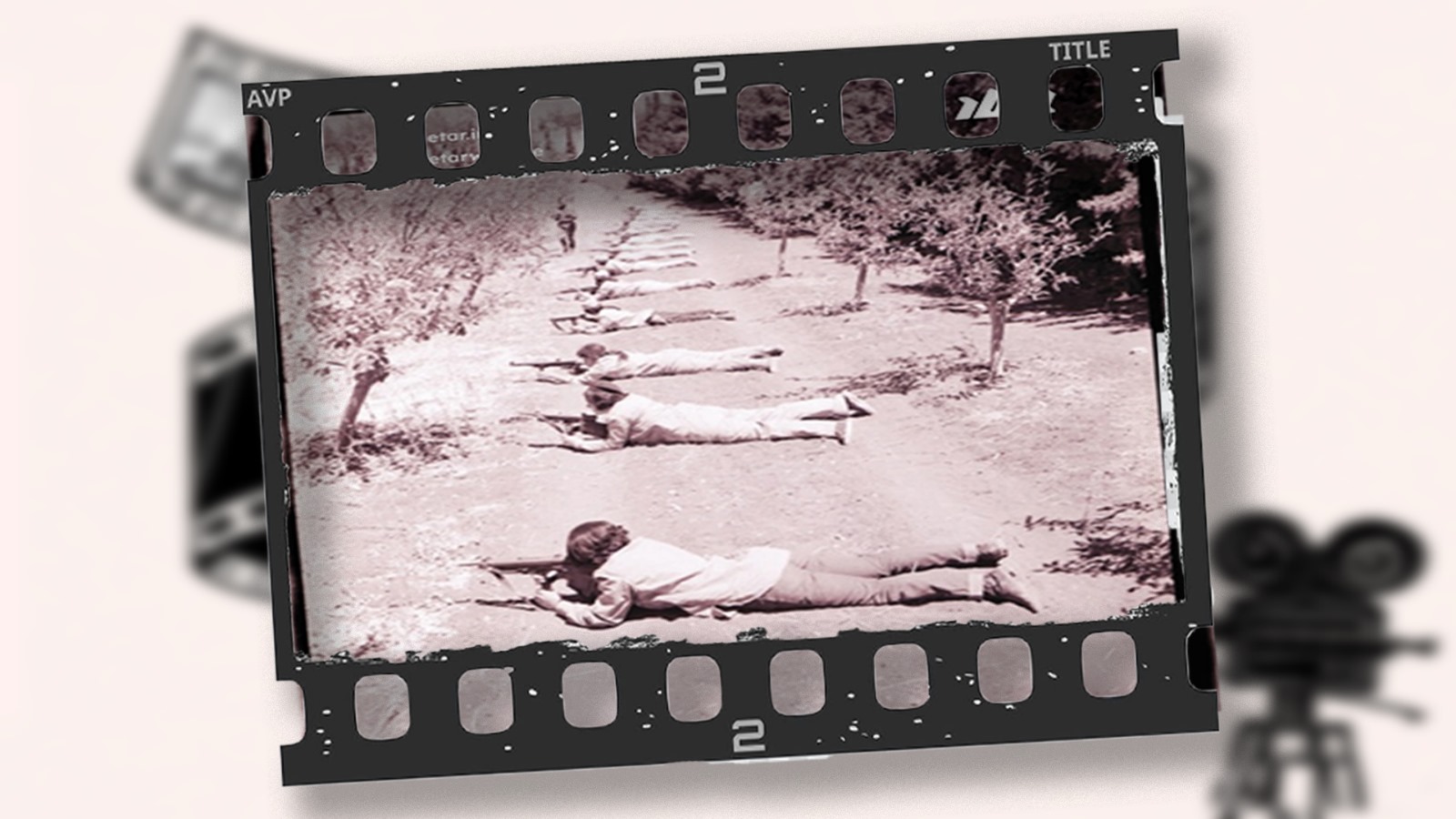 صورة لتدريب مجموعة من الفدائيات على إطلاق النار في أحد معسكرات الثورة الفلسطينية. مصورها وتاريخها مجهولان، رقمنت عن أصل سالب، بقياس 6*6، ضمن المجموعة 13، برقم 103، من أرشيف إسماعيل شموط.