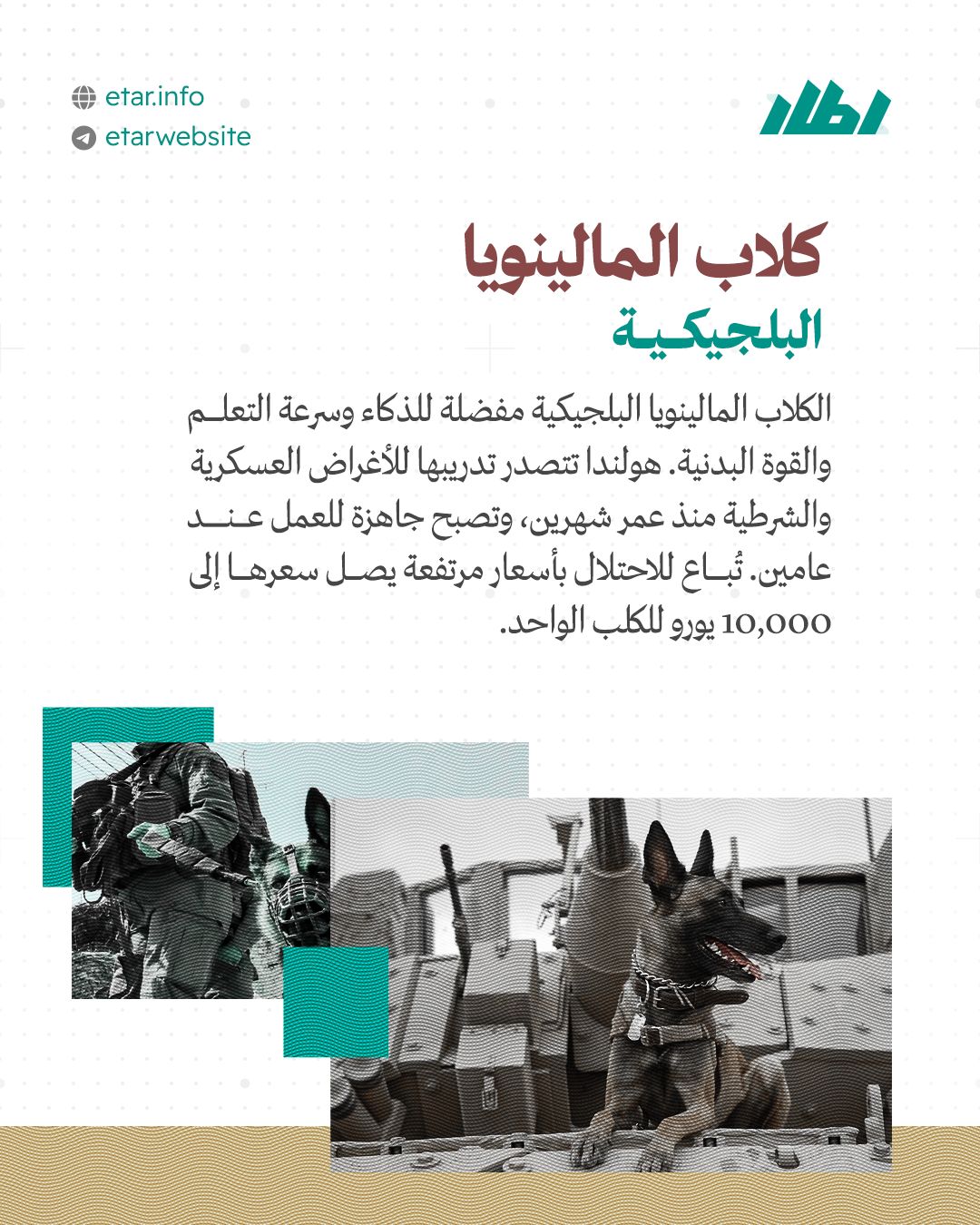وتتبع بعض المزارع والمعاهد الهولندية برامج متقدمة في التكاثر الانتقائي والتدريب المهني للكلاب العسكرية يرفع من سعرها ويؤكد على تفوقها وجودتها. وعادةً ما تصبح هذه الكلاب جاهزة للاستخدام في عمر عامين. وقبل ذلك، تُنتقى من قِبل مُربين هولنديين وألمان يبيعونها بسعر 10,000 يورو للكلب الواحد، لتُكمل دولة الاحتلال مهمة تدريبها وصقل مهاراتها المطلوبة.